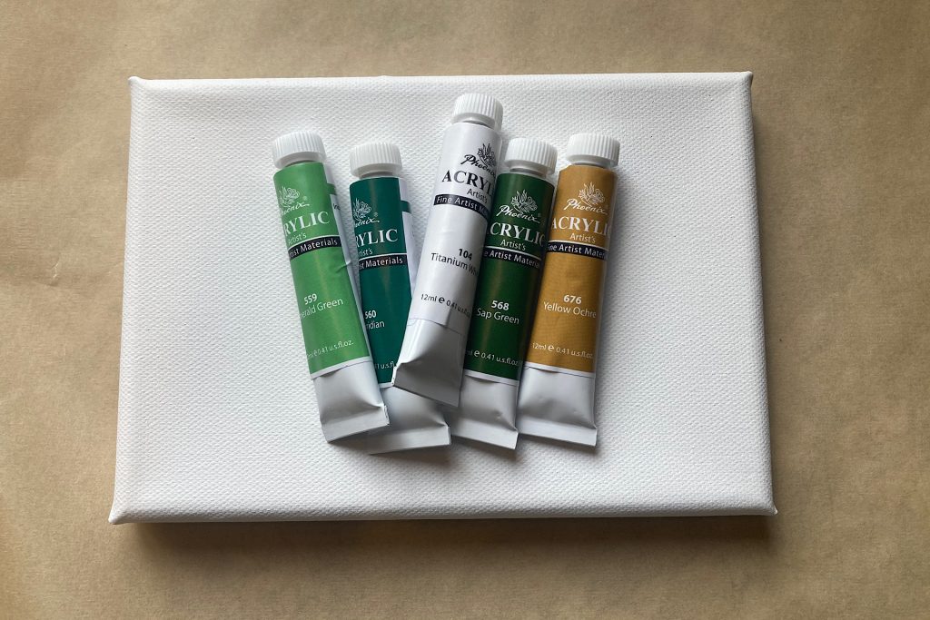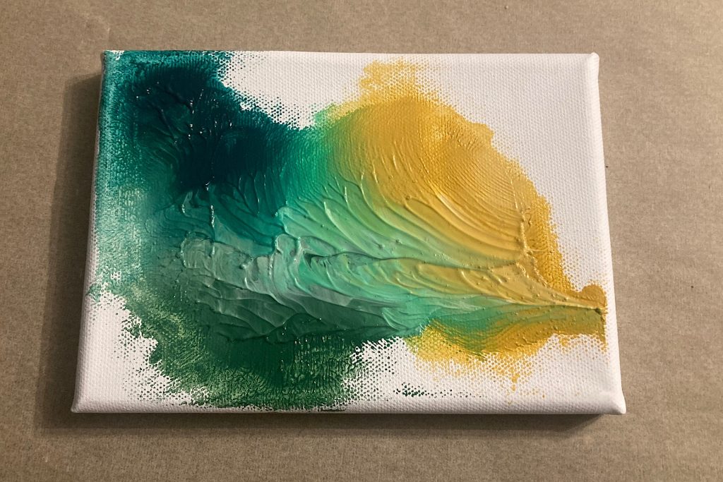 Squeeze small amounts of each color onto the canvas, spacing them close enough to blend but far enough apart to keep their individual character. There’s no wrong combination here — have fun choosing your colors and trust that they’ll come together to create something wonderful.